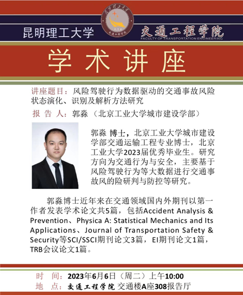,并作题为“风险驾驶行为数据驱动的交通事故风险状态演化、识别及解析方法研究”的学术报告,本次讲座由郭凤香教授主持,交通星力