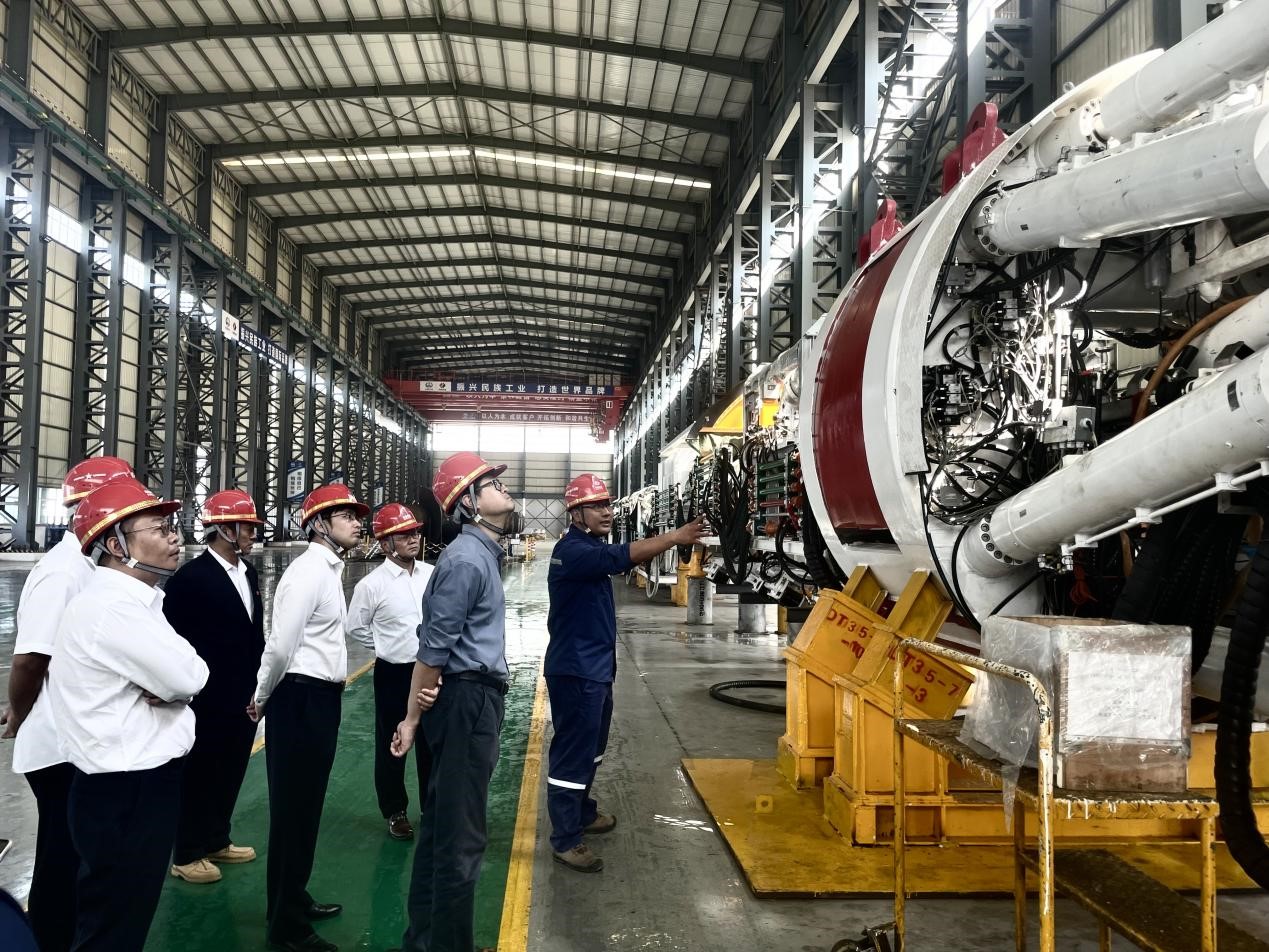 一行调研参观水工厂大型TBM掘进机、盾构机装备总装制作车间;技能大师工作室;中电建中水14局中心试验室(云南博泰质量检测有限公司)各功能室。