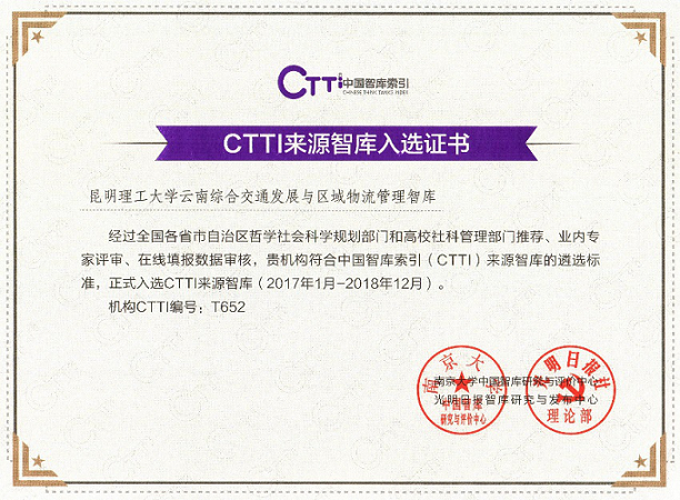 云南综合交通发展与区域物流管理智库成功入选中国智库索引(CTTI)来源智库,是入围名单中少有的专业型智库。