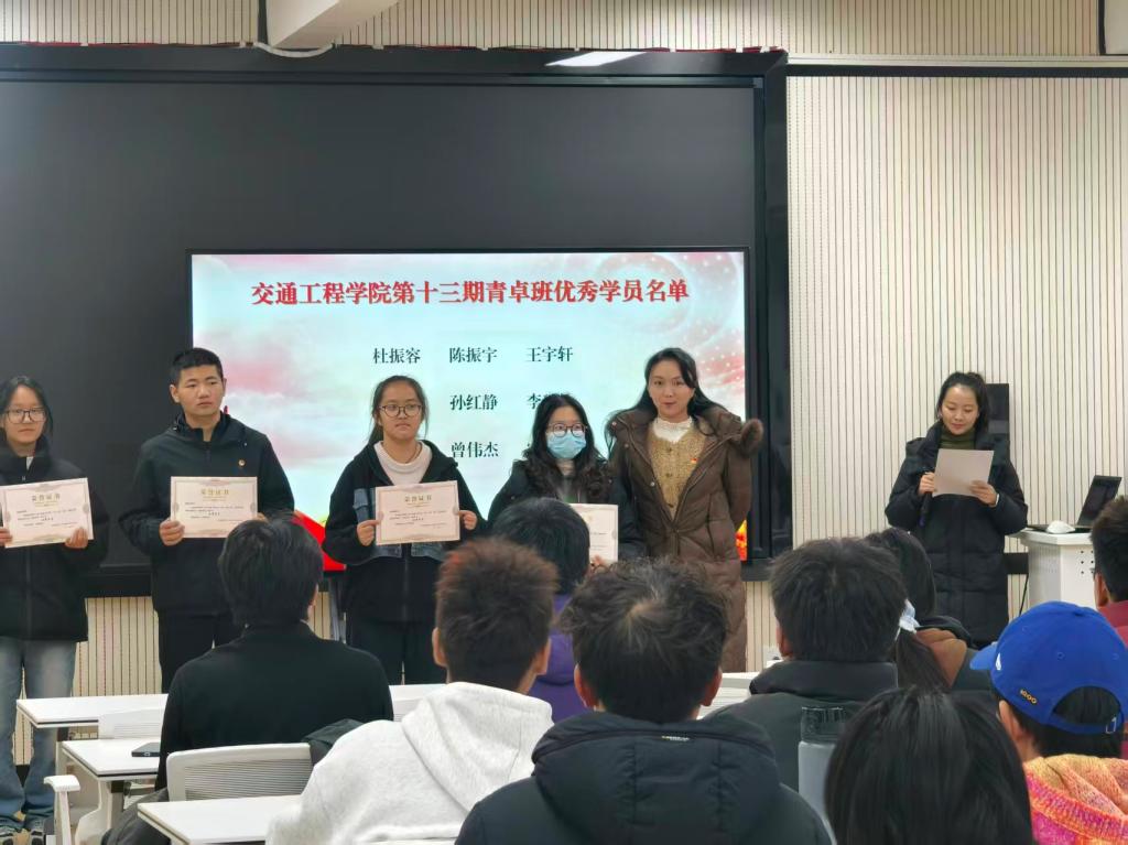 青年马克思主义者培养工程第十四期青卓班开班暨第十三期结业仪式在交通楼A402举行。学院党委书记副书记赵佳、团委负责人钱乾、学院团学干部及青卓班新老学员等70余人共同参加此次活动。