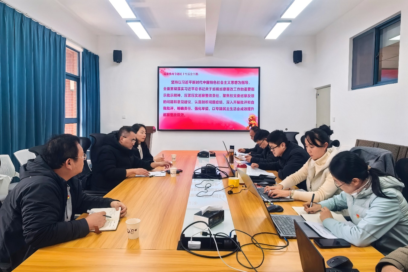 本次2025年度民主生活会的主题是“深入学习贯彻习近平新时代中国特色社会主义思想,全面贯彻落实党的二十届四中全会精神,以打攻坚战、持久战的决心和恒心,锲而不舍落实中央八项规定精神,推进作风建设常态化长效化,以优良作风凝心聚力、真抓实干,奋力开创中国式现代化建设新局面”;巡察整改专题民主生活会的主题是“坚持以习近平新时代中国特色社会主义思想为指导,全面贯彻落实习近平总书记关于巡视巡察整改工作的重要指示批示精神,压紧压实巡察整改责任,聚焦校党委巡察反馈的问题和意见建议,认真剖析问题症结,深入开展批评和自我批评,明确责任、强化举措,以专题民主生活会成效提升巡察整改质效”。为高质量开好此次民主生活会,学院党委会前紧扣两个主题扎实开展理论学习,为开好民主生活会打牢思想基础。同时,广泛征求所属党支部、科室和群众意见建议,深入开展谈心谈话,全面查摆突出问题,结合反面典型案例深刻剖析,认真撰写对照检查材料,为民主生活会的顺利召开打下了坚实的基础。