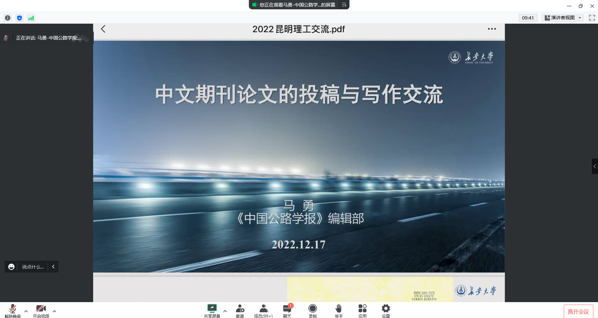 全院师生开展主题为“中文期刊论文的投稿与写作交流”的学术交流讲座,活动采取线上线下相结合的方式开展,《中国公路学报》编辑部副主任马勇博士主讲。