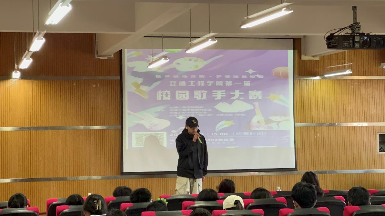 第一届“歌声悦动交院·梦想绽放校园”校园歌手大赛(初赛)在交通楼A402报告厅举行,院团委书记、评委、观众等200余人参与。