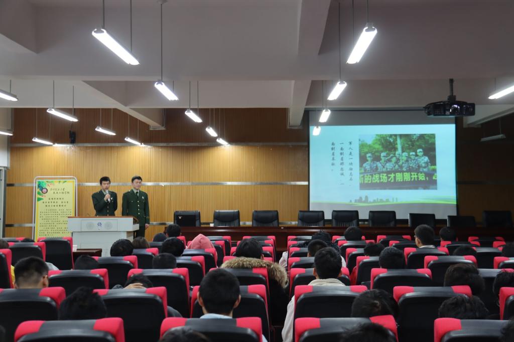 学工办征兵工作负责人李春梅老师、徐恩慧老师以及160余名本科生参加本次宣讲。