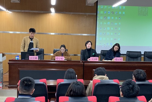 会议由唐佳桃老师主持。首先,院党委副书记王懿娜老师致辞。其次,唐佳桃老师向全体团学干部介绍了新的团学工作指导老师——赵云瑶老师。最后,团委学生会各个部门负责人汇报了近期本部门的工作情况,及在工作中遇到的问题,与会老师在听取汇报后给出了对应的建议和意见。