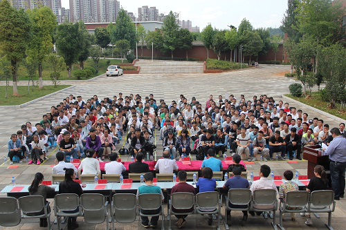 大会一开始,17级全体新生以饱满的热情入场并有秩序的坐下,主持人吴历勇老师宣布典礼开始,介绍与会领导和老师,台下同学们以热烈的掌声欢迎老师的到来。接着是交通院院长何民老师致欢迎词,何民老师以认真详细且幽默的话语向同学们介绍交通院并欢迎同学们的到来,赢得台下同学们的阵阵掌声。紧接着是教师代表何明卫老师发言欢迎新生到来并教导同学们。然后是15级的老生代表林蔚涵欢迎新生的到来,向同学们传授经验和感想。最后是新生代表车辆工程172班的纪飞宇的精彩发言,他热情满满,充满斗志,代表全体新生发表感受,赢得老师的赞叹。最终,主持人吴历勇老师寄语并宣布典礼结束,老师和同学们有序退场,开学典礼结束。