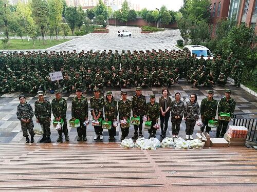 对他们的关怀和殷切希望,鼓励同学们要不怕苦不怕累,投入到军训这个大熔炉里,接受各种锻炼,培养吃苦耐劳和坚持到底的精神,锻炼严肃认真,一丝不苟,精益求精的品格,圆满完成各项训练任务,并将军训中收获的体会和精神带入到接下来的大学学习生活中,积极进取,奋勇争先,让大学的的四年青春更加绚丽多彩。最后,学生工作办公室的辅导员们给军训新生们分发了可乐和鲜美可口的梨,并说同学们军训辛苦了。