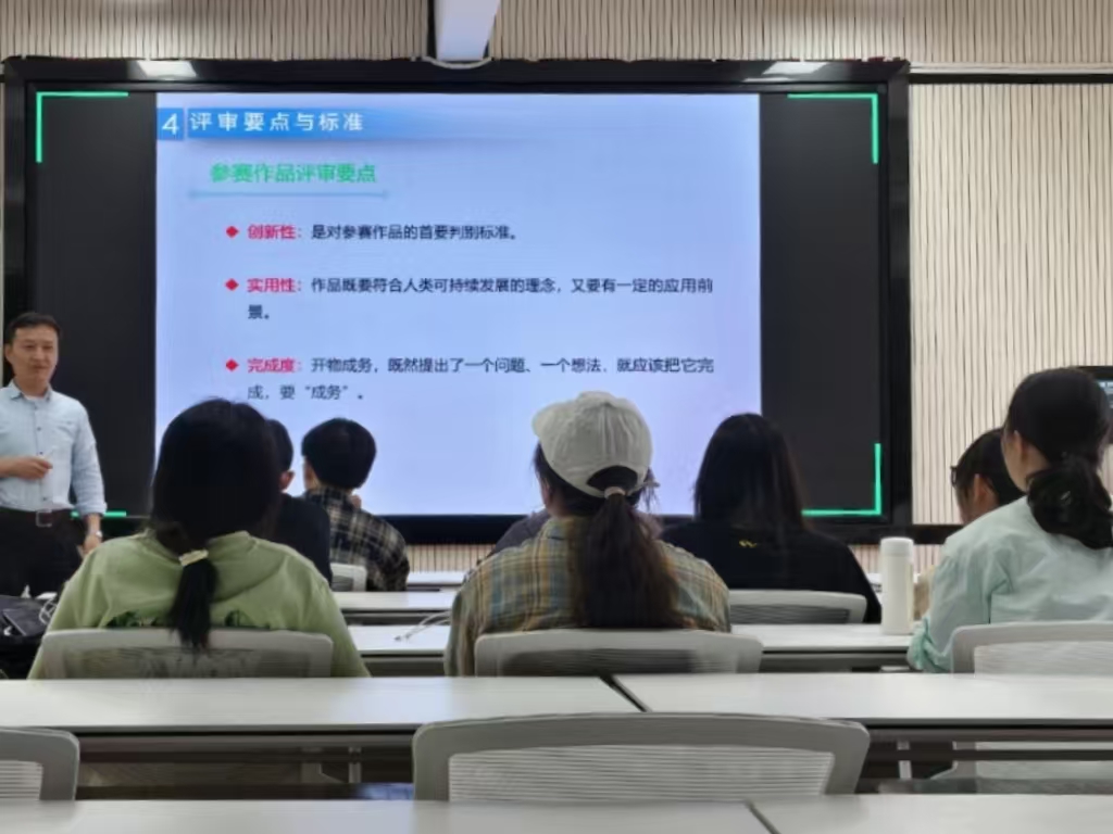 创新创业相关政策进行系统解读,重点围绕与交通相关的赛事类型、优质项目的评判标准以及参赛准备等方面进行详细讲解,并鼓励同学们要勇于尝试,敢于创新,积极投身创新创业实践。
