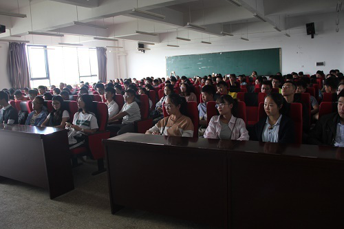 就业指导负责人李春梅老师,中国平安财产保险股份有限公司人事部吕健林、李俊锋老师,2018届毕业生以及部分学生干部,共计200余人。