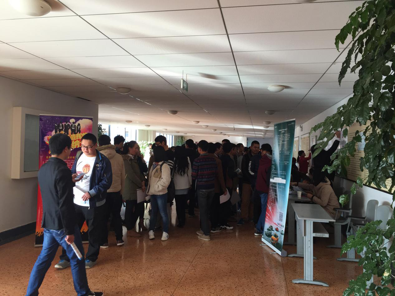 上午9:00时,招聘会正式开始,招聘单位通过播放宣传片、海报展示、面对面交流等方式向同学们介绍公司的概况、职业发展方向、人员需求以及选择该单位的理由等。每家企业前都挤满了咨询的学生,气氛十分热烈,同学们不仅与应聘单位认真交流,彼此之间也在积极交流,分享自己的心得与体会。在认真地咨询、细心地比较和筛选过后,大家纷纷向有意向的企业投递了个人简历。