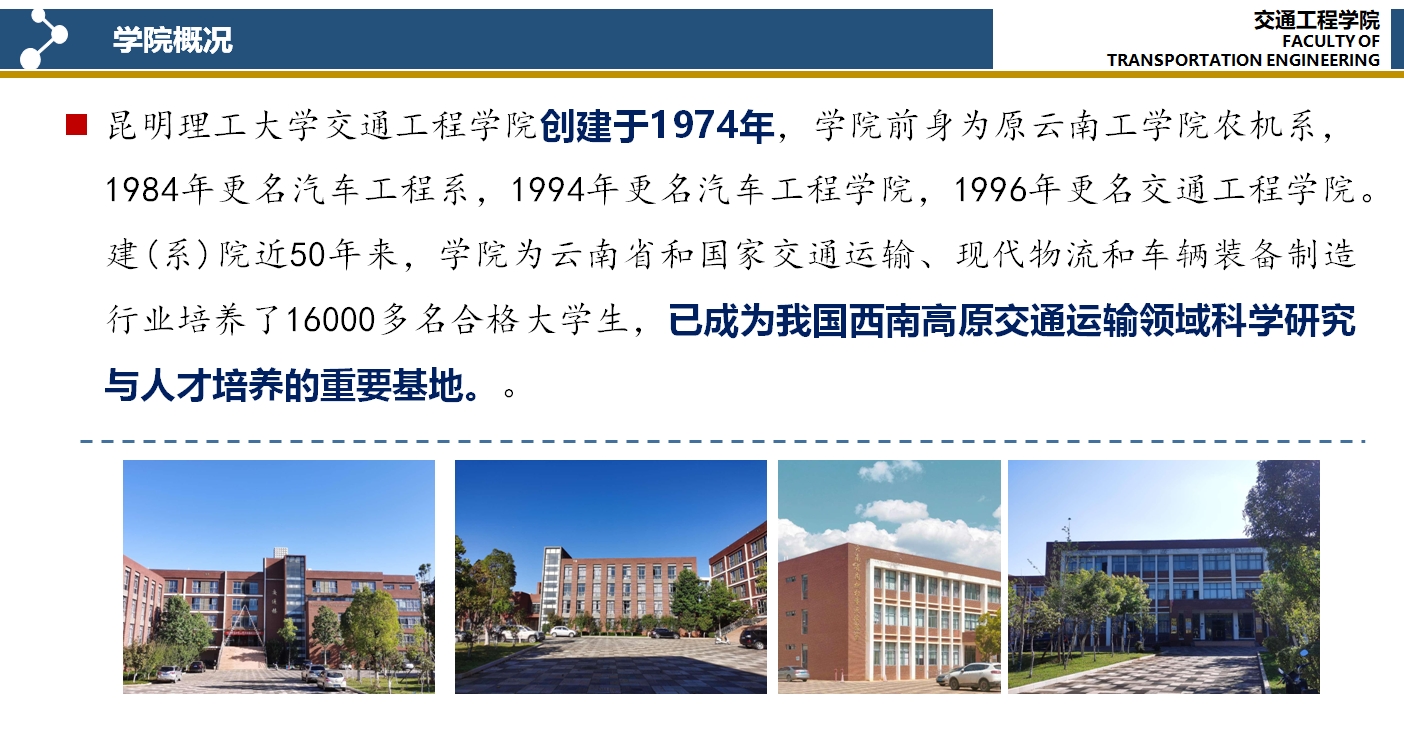 星力 创建于1974年,星力 前身为原云南工星力 汽车系。星力 在新迎校区奠基,在白龙校区成长,在呈贡校区壮大。星力 经过40多年的发展,形成了完备的学科体系,拥有交通运输工程一级学科博士和硕士学位授权点、车辆工程二级学科博士和硕士学位授权点、动力机械及工程二级学科硕士学位授权点,同时具备交通运输工程领域工程硕士授权资格。在本科生培养方面,星力 现有交通工程、交通运输、物流工程、车辆工程四个本科专业和物流工程(中外合作办学)专业。交通工程专业于2017年通过工程教育专业认证,2019年获批国家级一流本科专业建设;车辆工程专业于2018年通过工程教育专业认证,是教育部首批新工科实践与探索项目专业,2019年获批省级一流本科专业建设;物流工程专业是云南省重点产业引领品牌专业、教育部批准的中外合作办学项目;交通运输专业是云南省本科综合改革试点专业。